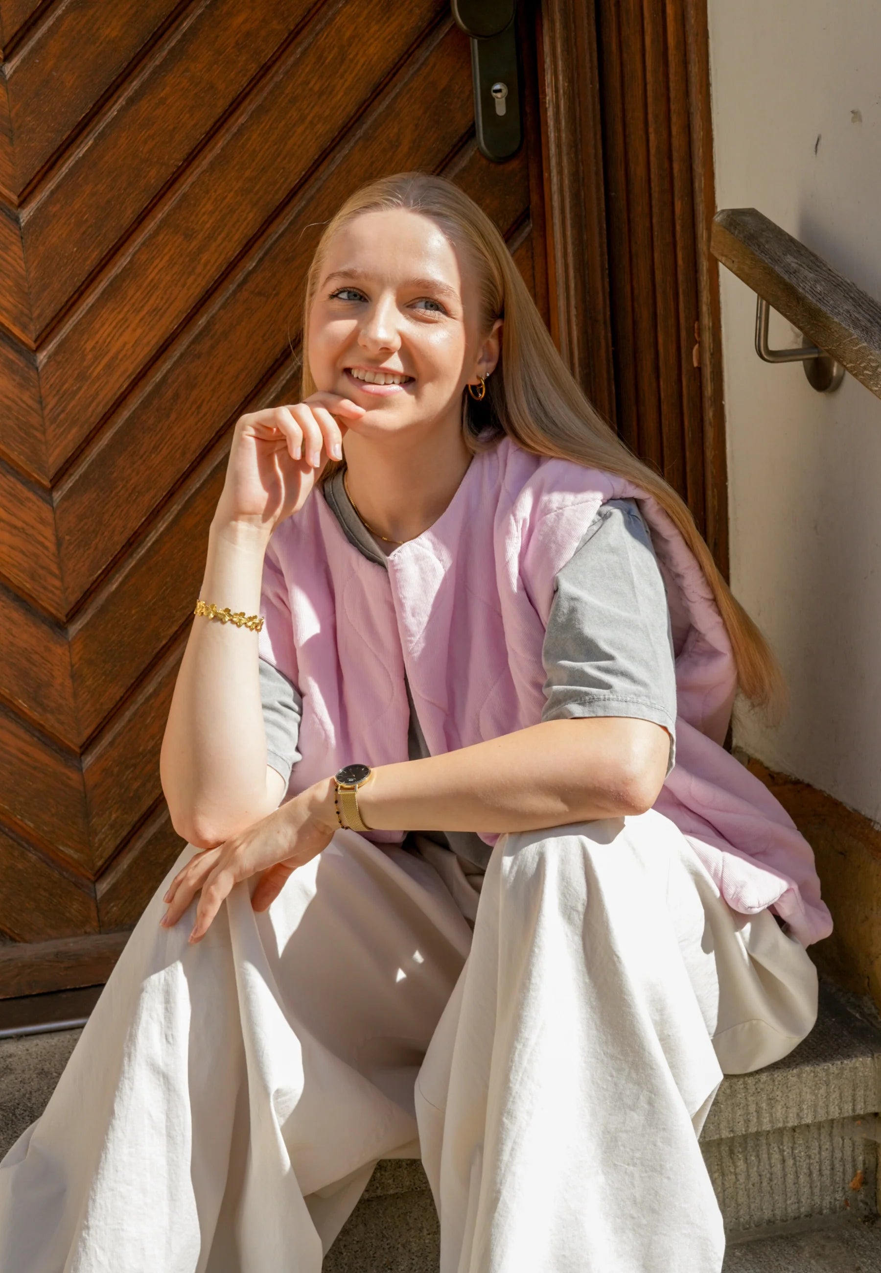 - Anastacia ist 1,70m groß und Birte 1,70m trägt die Weste.