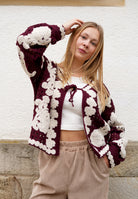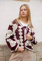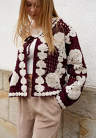 Strickjacke mit besonderem Häkelmuster und lockerer Passform.